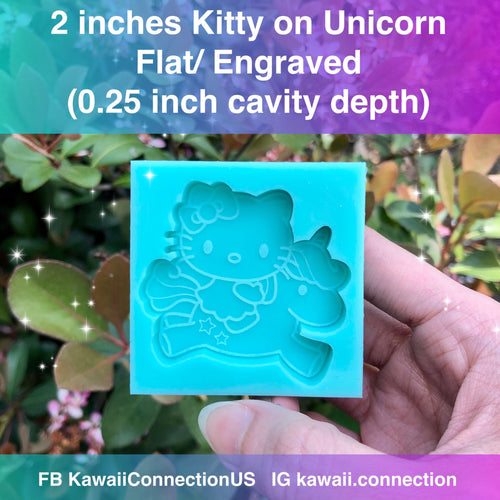 2 inches Kitty on Unicorn FLAT Engraved Silicone Mold for Resin Deco Charms Cabochons