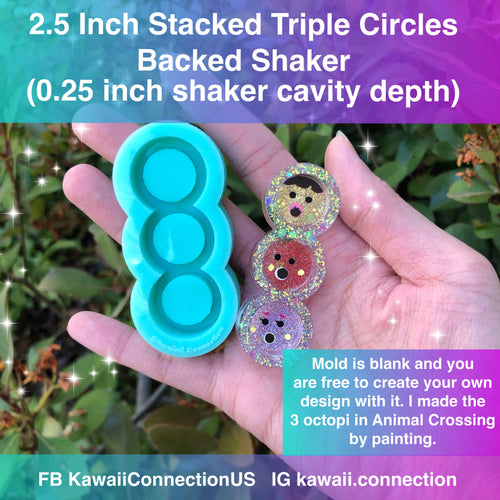 2.5 inch PLAIN Stacked Triple Circles (0.25 inch cavity depth) Backed Shaker Silicone Mold Perfect for Resin Hair Barrettes or Key and Bag Charms